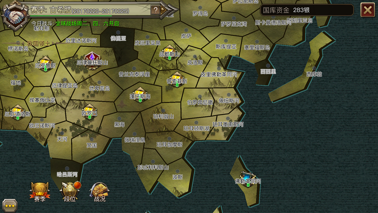 维护更新后,全球战场新增“远征宣战”玩法,各国国王及大将军可以使用道具“行军令”,直接向全球地图中的内陆非首都领土发起宣战!