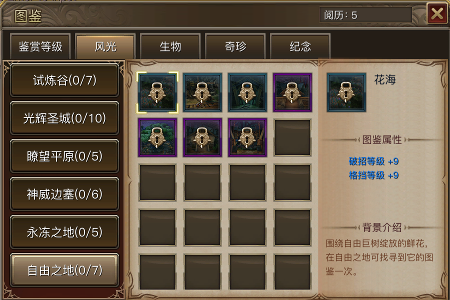 例行维护后,游戏内将会新增“自由之地”的风光图鉴,无论是自由巨树旁绽放的花海,还是魔神所在的隐者之屋,玩家在享受视觉盛宴的同时,到达该风光地点并触发任务,停留1分钟的时间,便可以将图鉴收录其中啦~每个图鉴会给玩家带来不错的属性加成,以及满满的收集满足感~大家快来参与吧!