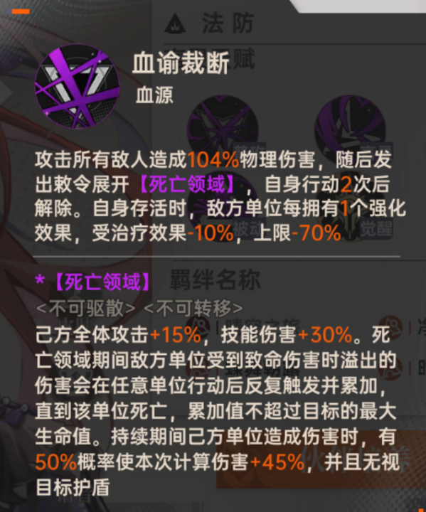 - 效果:攻击所有敌人造成物理伤害,随后发出敕令展开【死亡领域】。