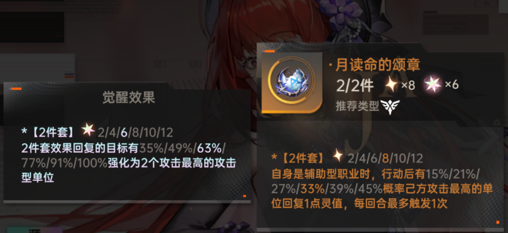 觉醒3星:敌方单位回复灵值时有概率使回复的灵值-1,若回复来自友方单位则概率提升至100%,精神元素不受该效果影响干扰敌方技能循环(无论开局的入场回灵,普攻回灵又该路-1,以及超多回灵EVA的能源给攻击型队友+2再+1也会被百分百减少为+2-1,再+1-1,最终只有一点灵值)