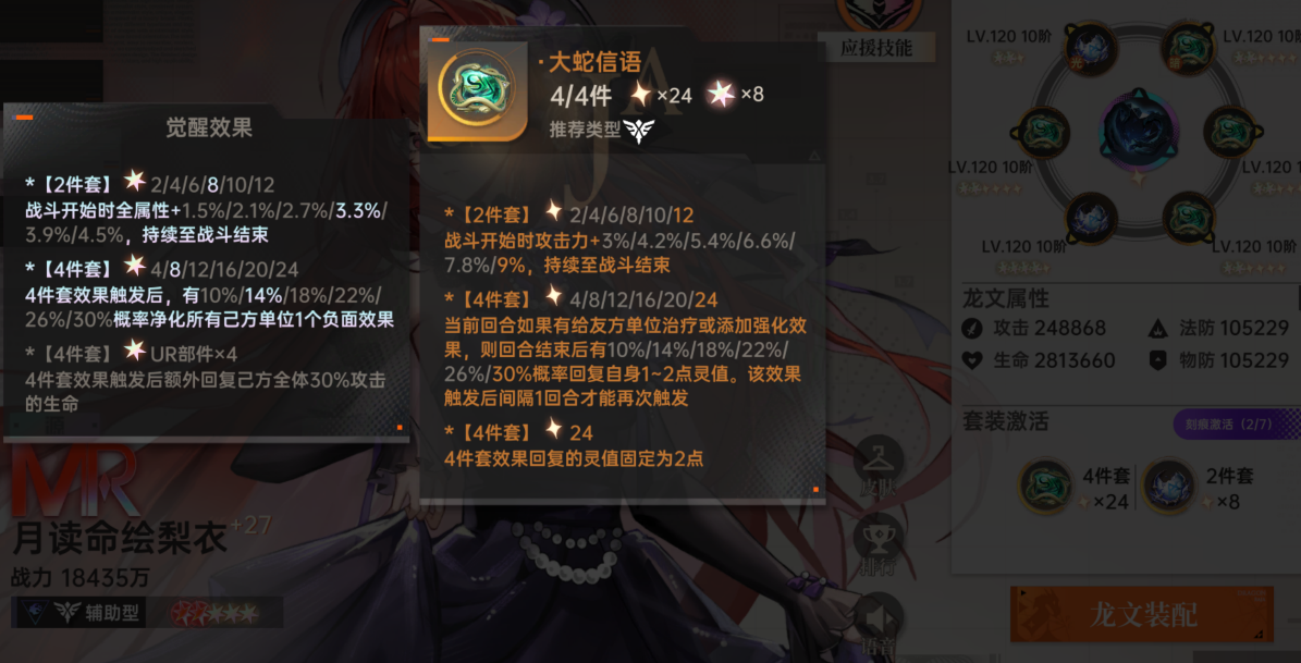 由于月读命绘梨衣属于增益限制类辅助,所以有多套辅助龙文可以选择。