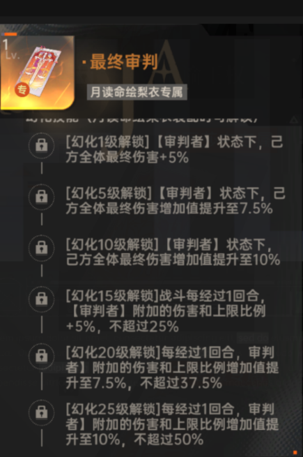 提高觉醒5【审判者】状态下的己方全体最终伤害以及【审判者】附加伤害和上限比例,解锁伤害模板,机制更加全面