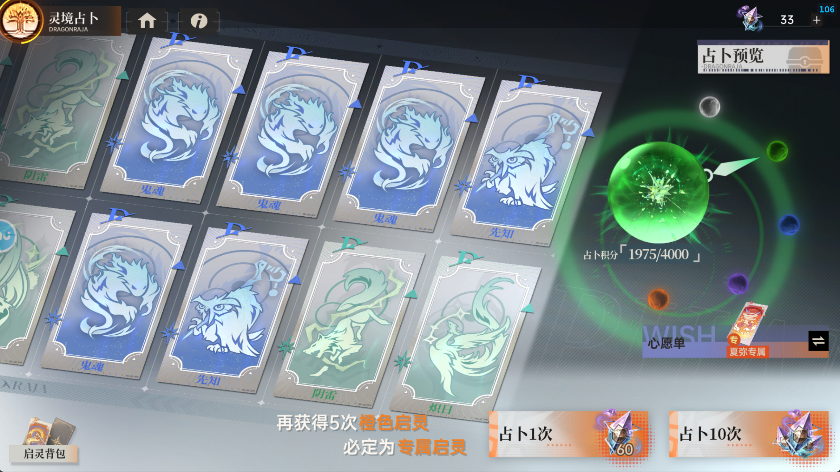后续推荐限制类启灵,例如森罗,侧写,风王之瞳等可以通过灵境占卜获得