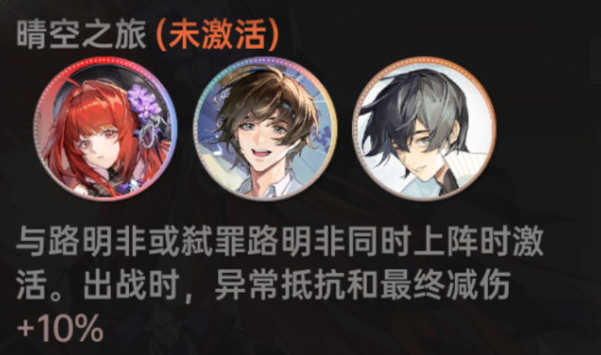 效果:出战时,异常抵抗和最终减伤提升(强化绘梨衣生存能力,使其在高压环境下稳定释放技能 )。