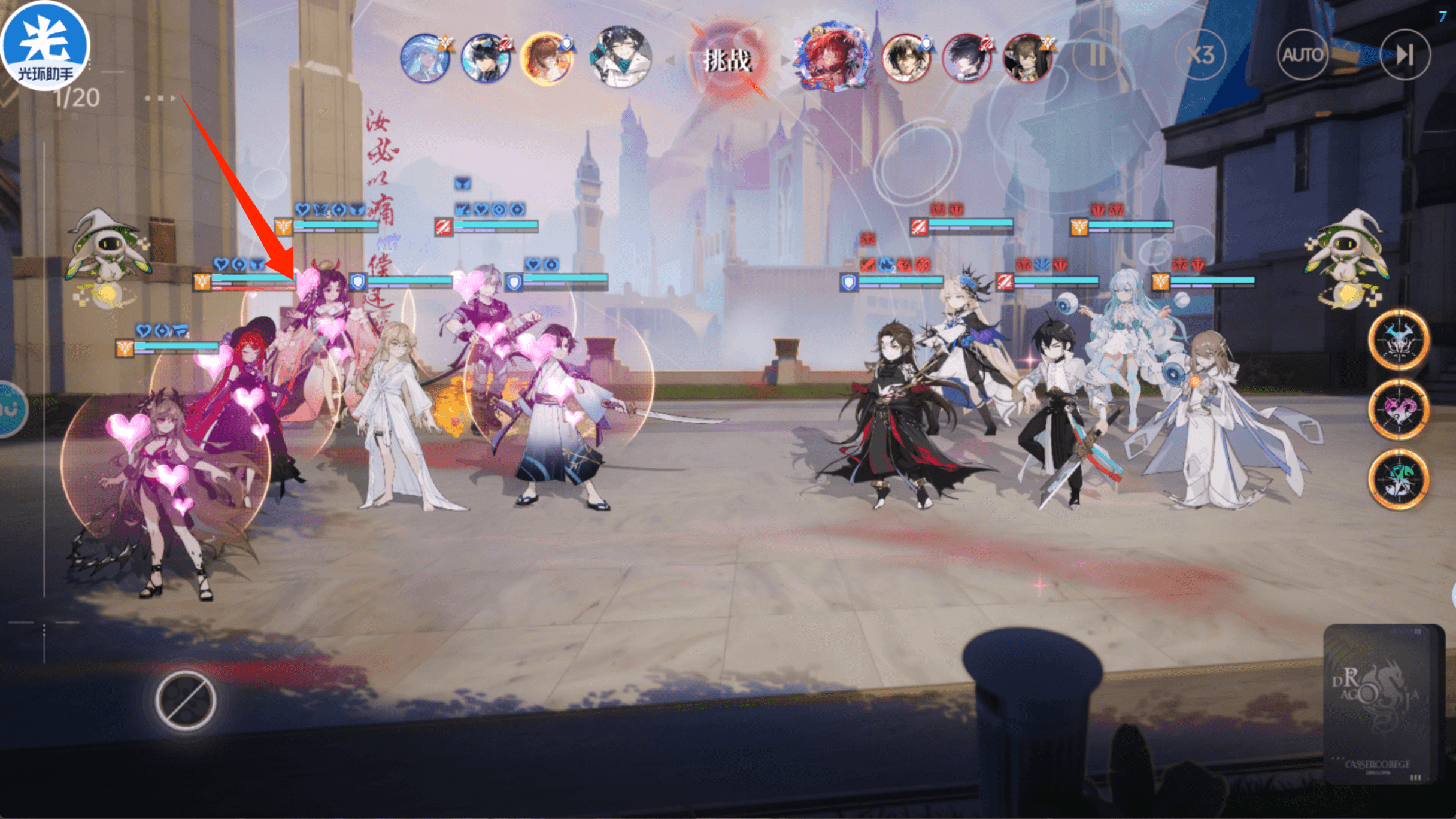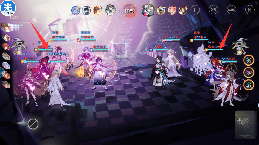 支援 路明非+傲慢(援助技能可以提高生命上限)+风间琉璃(与小暮有三回合开局减伤)