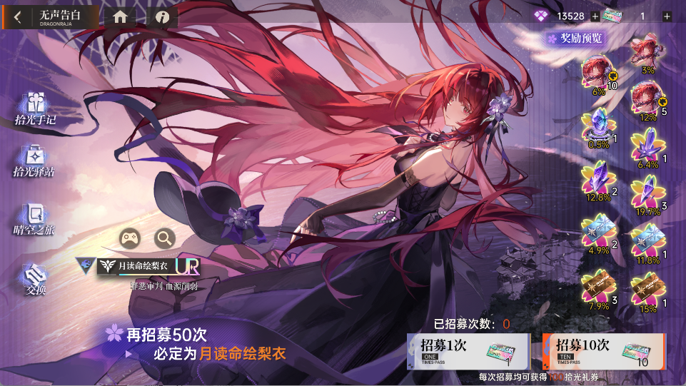 目标:拿下新UR角色「月读命绘梨衣」并培养至5星,并培养一套成型的龙文套装。