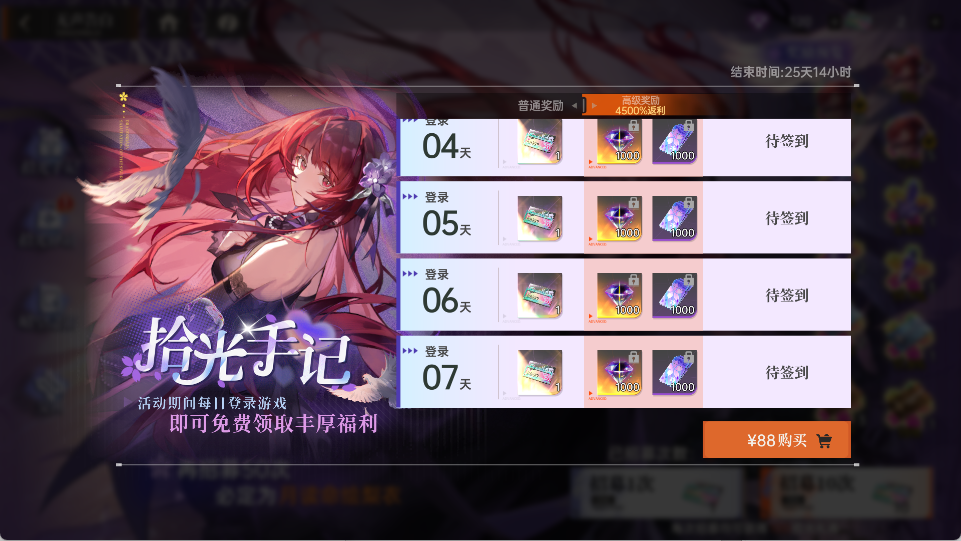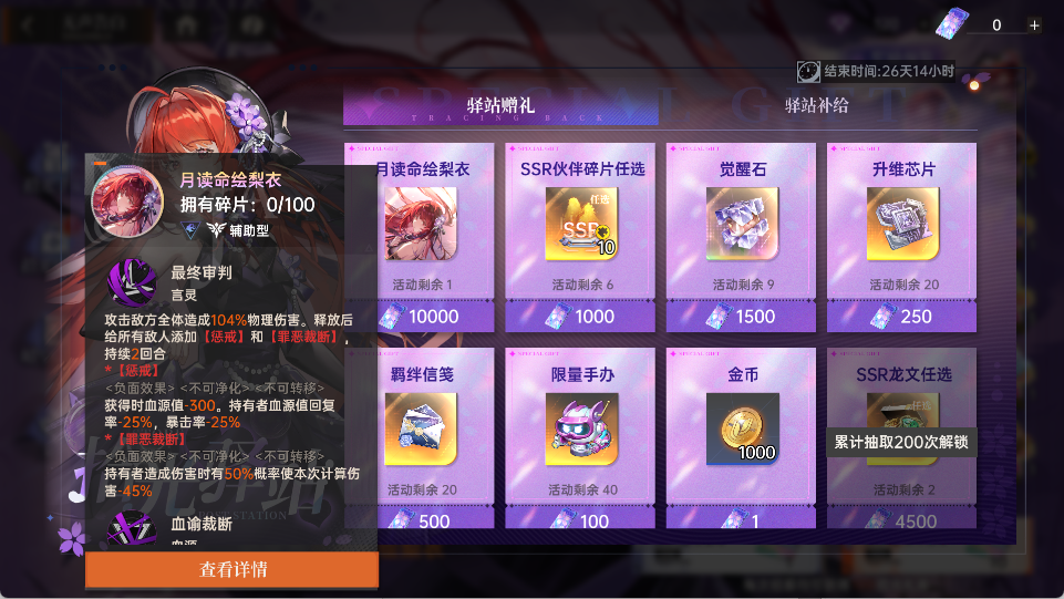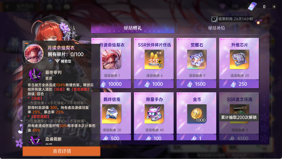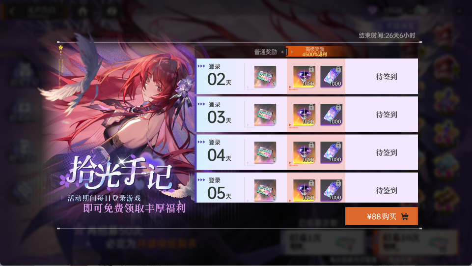 目标:拿下新UR角色「月读命绘梨衣」并培养至3星,囤积拾光礼卷兑换月读命绘梨衣