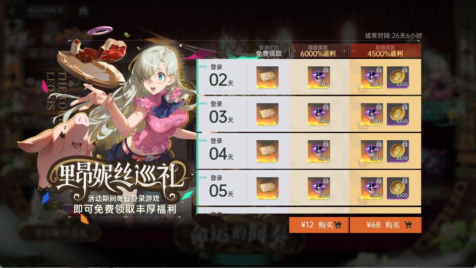 必氪:【月卡】+【周卡】,这是钻石和资源最稳定的来源,且在周年庆期间奖励双倍,性价比无敌;另外就是【拾光手记】,可以累积获得57抽