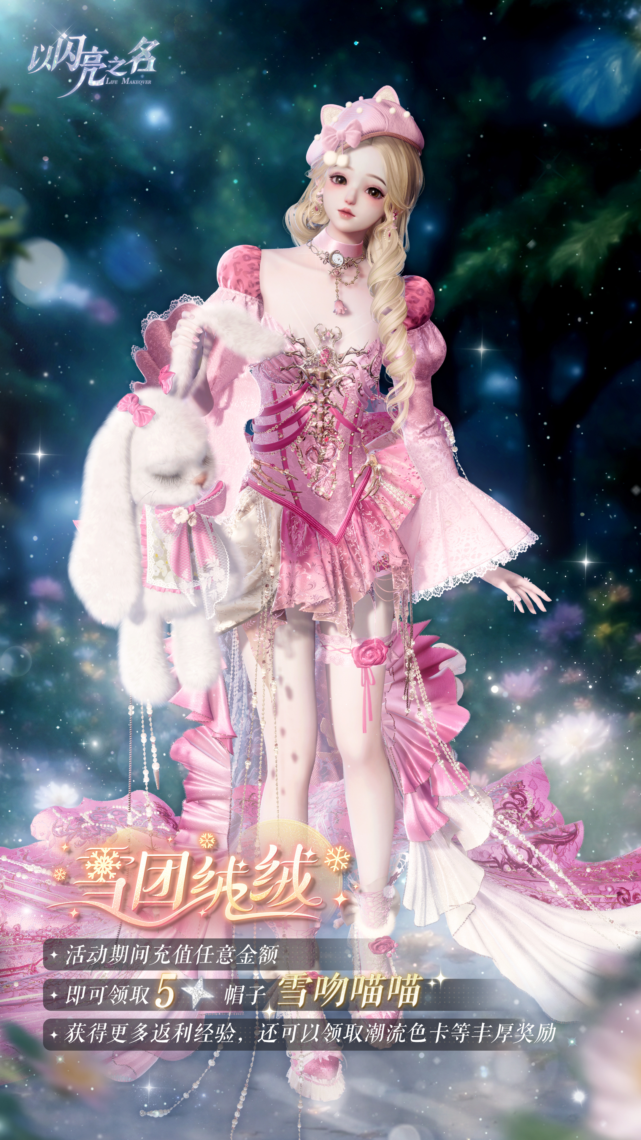 11月11日更新后-12月1日23:59,在游戏内或游戏官方网站途径充值任意金额,即可在【雪团绒绒】页面领取限定五星帽子【雪吻喵喵】。