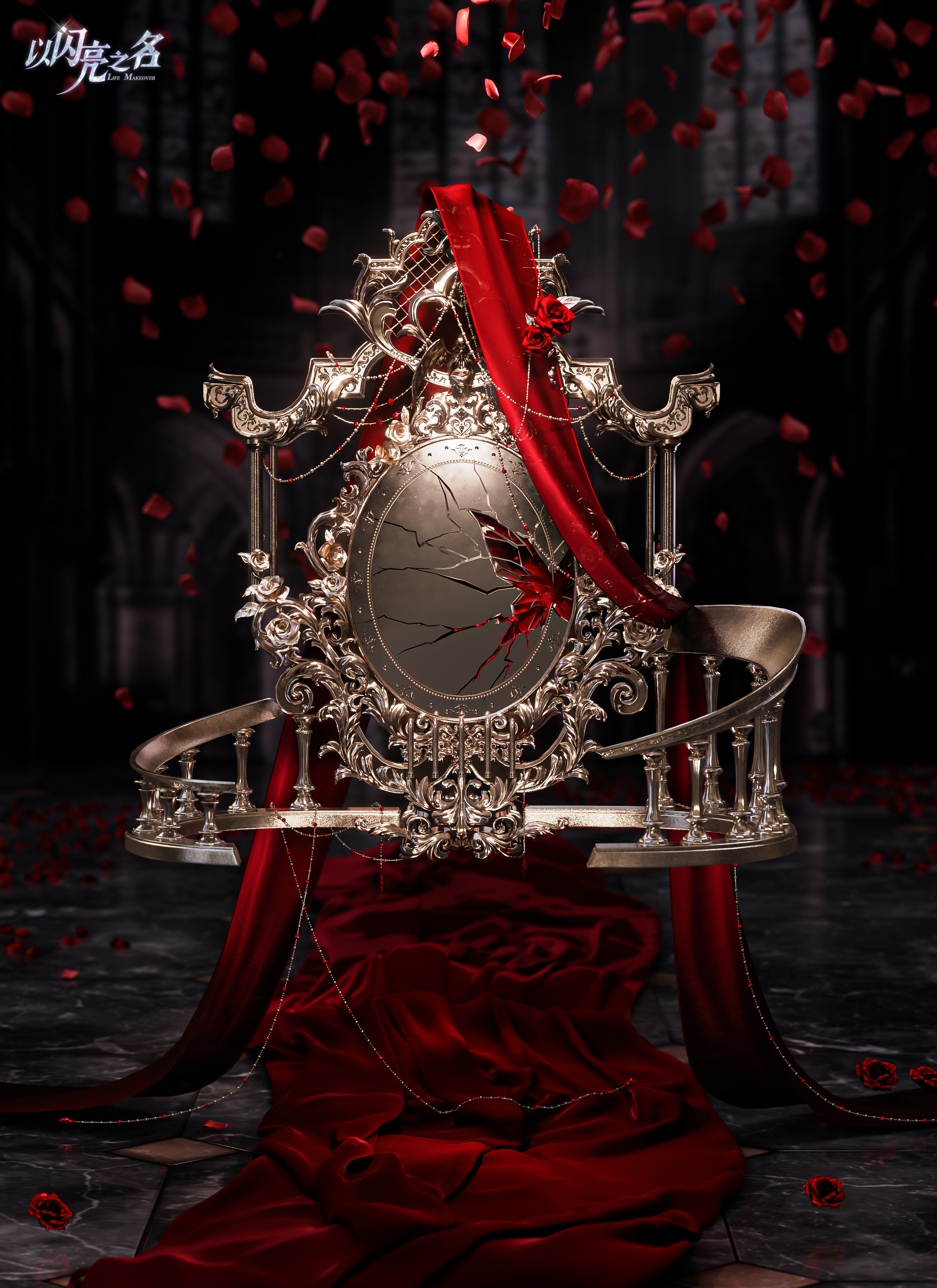 镜面破碎,化作红色的玫瑰花瓣飘向伊甸。