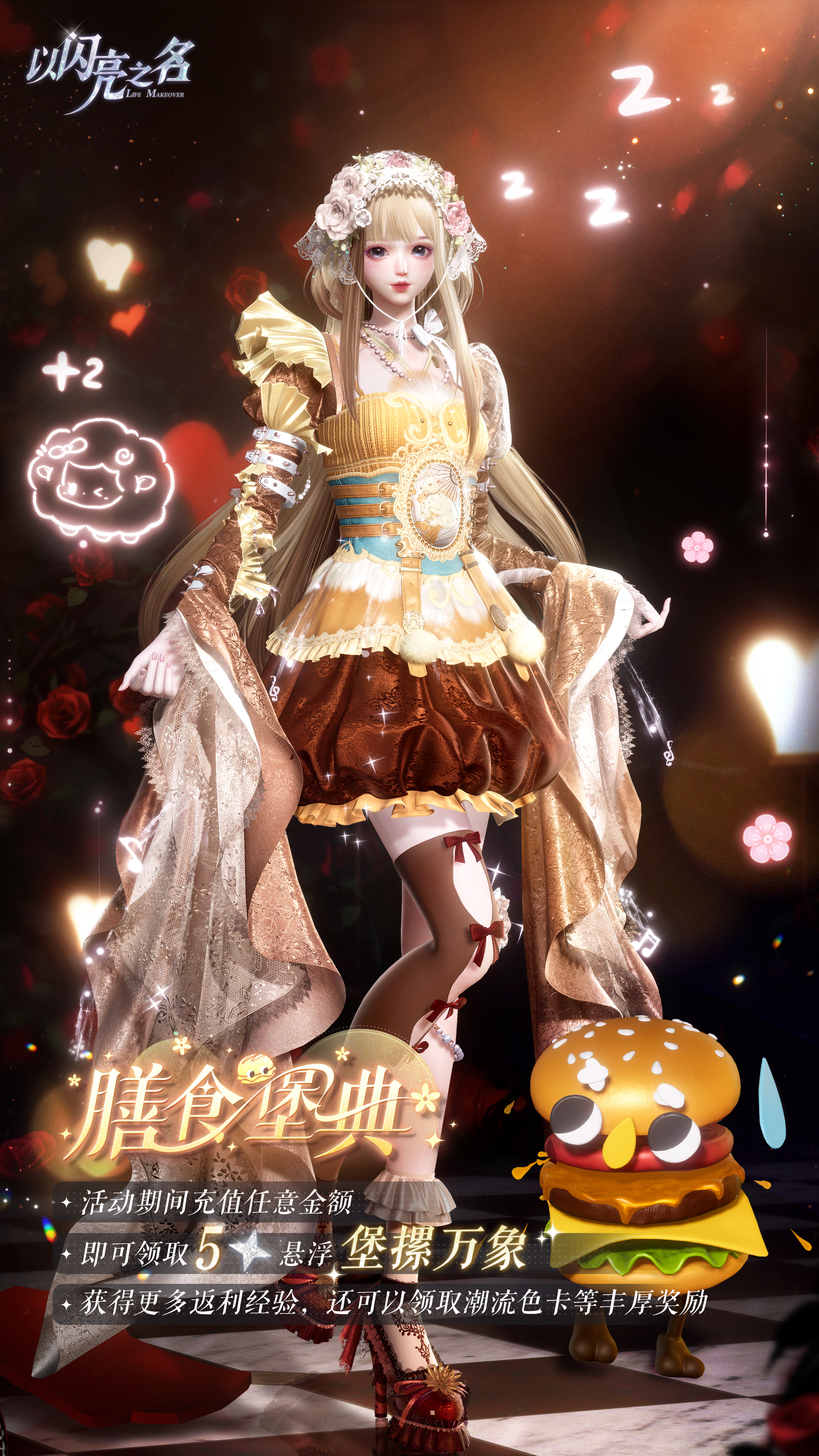 12月23日更新后-1月12日23:59,在游戏内或游戏官方网站途径充值任意金额,即可在【膳食堡典】页面领取限定五星悬浮【堡摞万象】。