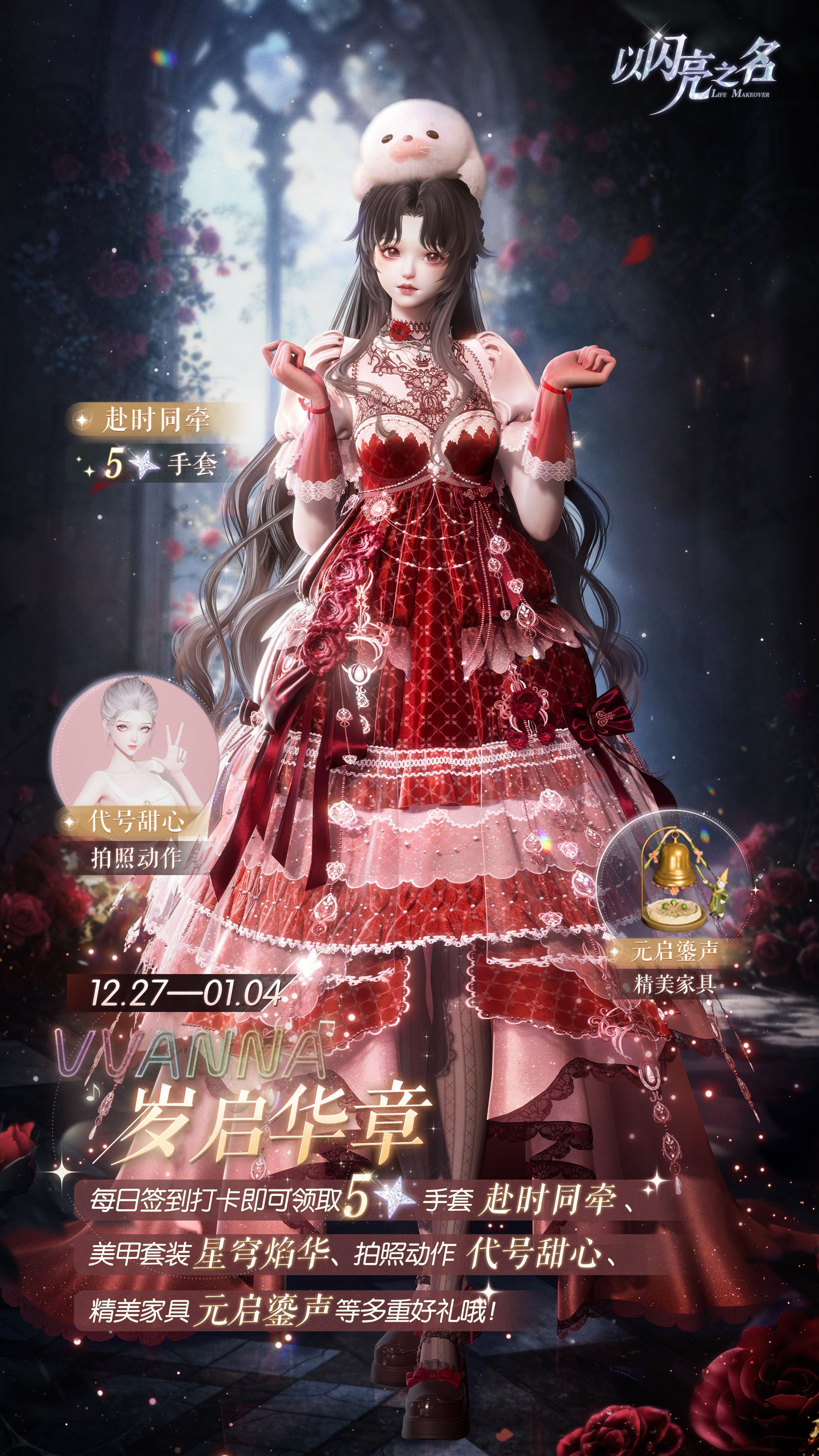 今日(12月23日),《以闪亮之名》全新绯魇烬梦3.7版本正式更新,从即日起至1月12日限时登陆!随着版本更新,以Bloody Mary欧式传说为灵感、融合文艺复兴贵族穿搭与多重象征意象的全新六星猩红噬梦套装,以山野精灵为核心灵感,融合非遗滚灯技艺与高山植物元素的全新五星铃梦清音套装、全新莱茵序曲四星套装、SSR羁绊蓝殊-溺惑、全新生日系统以及海量福利活动全面上新!多重亮点齐聚,邀玩家共赴这场兼具暗黑惊悚与非遗温柔的焕新之旅!以夜色为契,共冕新生!