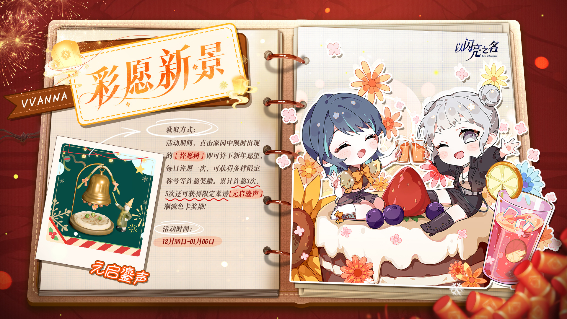 累计许愿3次,即可获得元旦限定菜谱【元启鎏声】,累计许愿5次,还能获得潮流色卡奖励哦~