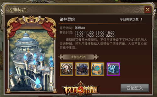 依次击败三个BOSS后,整个副本也就顺利通关了!虽然副本的难度很高,但相应的奖励也是非常丰厚的,不仅有钻石奖励、还有神兵神器可以获得,各位勇士们快速速前往征战诸神契约吧!