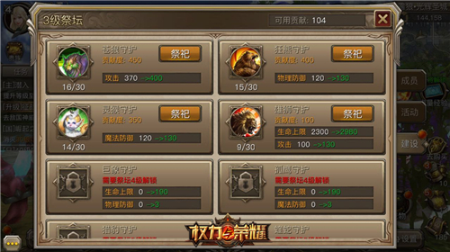 贡献值不仅体现了公会成员对公会的热爱,还是提升实力的绝密武器!在公会祭坛里,勇士们可以使用贡献值祭祀祭坛,从而获得大量属性加成。随着公会成员们的努力,祭坛等级不断提升,可以开启更多守护,轻松一键获取大量属性加成,再也不用担心战力升不动啦!除此之外,勇士们还可以在公会物资营购买稀有道具,强化石、洗练石、各种宝石兑换,相比商城购买还有超值折扣哦!还等什么,公会任务做起来吧!