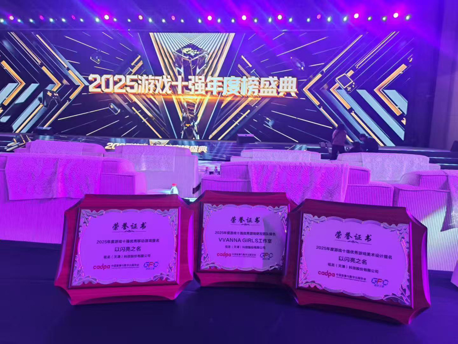 凭借在游戏研发与产品创新领域的持续投入与稳定表现,祖龙(天津)科技股份有限公司VVANNA GIRLS工作室入选“2025年度游戏十强优秀游戏研发团队”。与此同时,依托精准清晰的产品定位、亮眼的市场运营业绩及行业领先的美术创作水准,一举斩获 “2025 年度游戏十强优秀移动游戏” 与 “2025 年度游戏十强优秀游戏美术设计” 两项重磅荣誉,充分彰显了祖龙娱乐在细分赛道的产品打造能力与行业认可度。